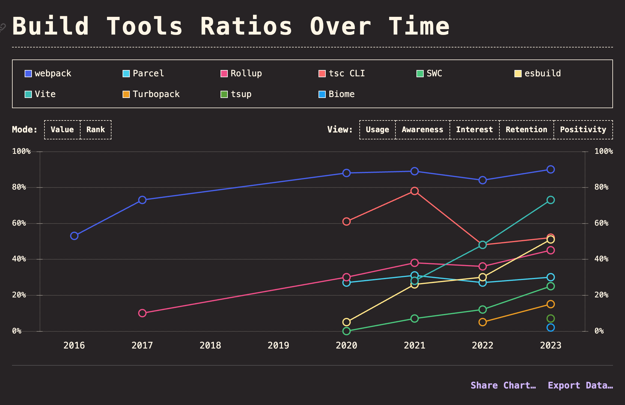 2024-09-15[!Summary] https://2023.stateofjs.com/en-US/libraries/build_tools/Webpack 90%Vite 73%RollupESbuildSWCTurbopackBiome