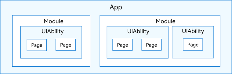 在开发态,一个应用包含一个或者多个Module,可以在