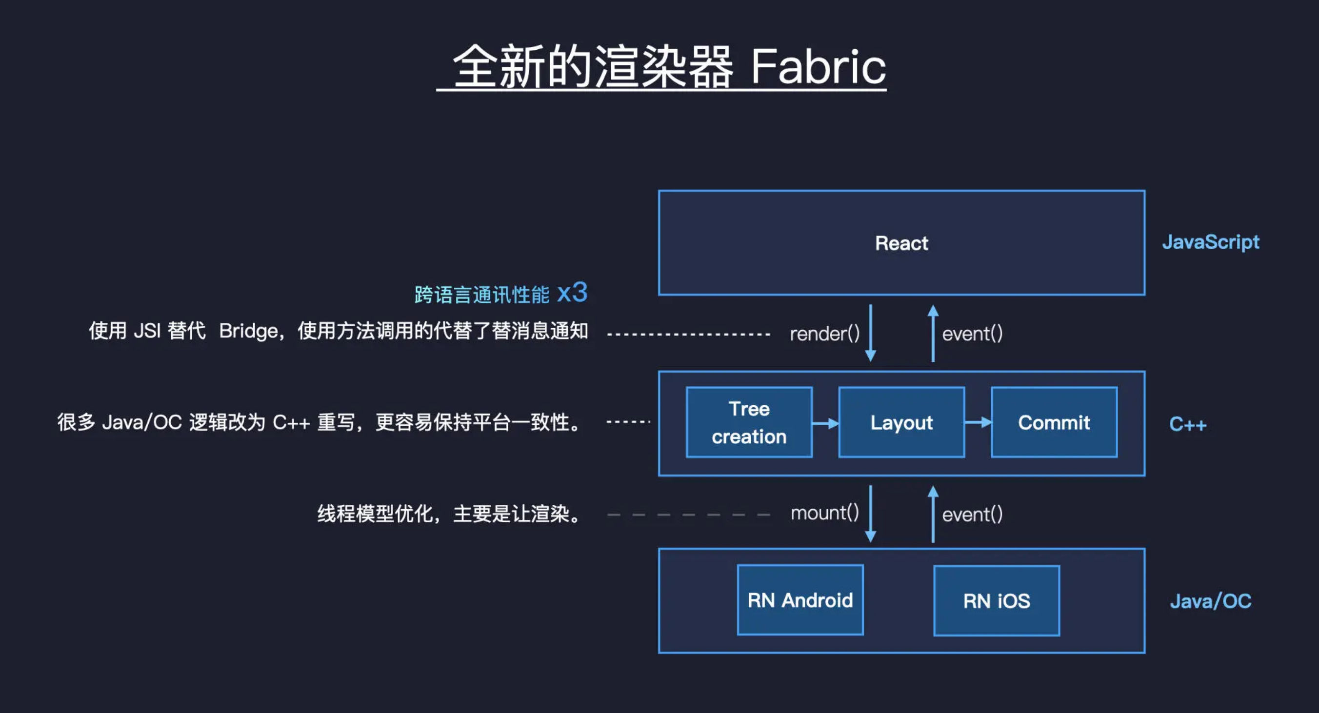 - C++层优化: 将渲染逻辑下沉到C++层,利用C++的性能优势,减少JavaScript层的工作量。