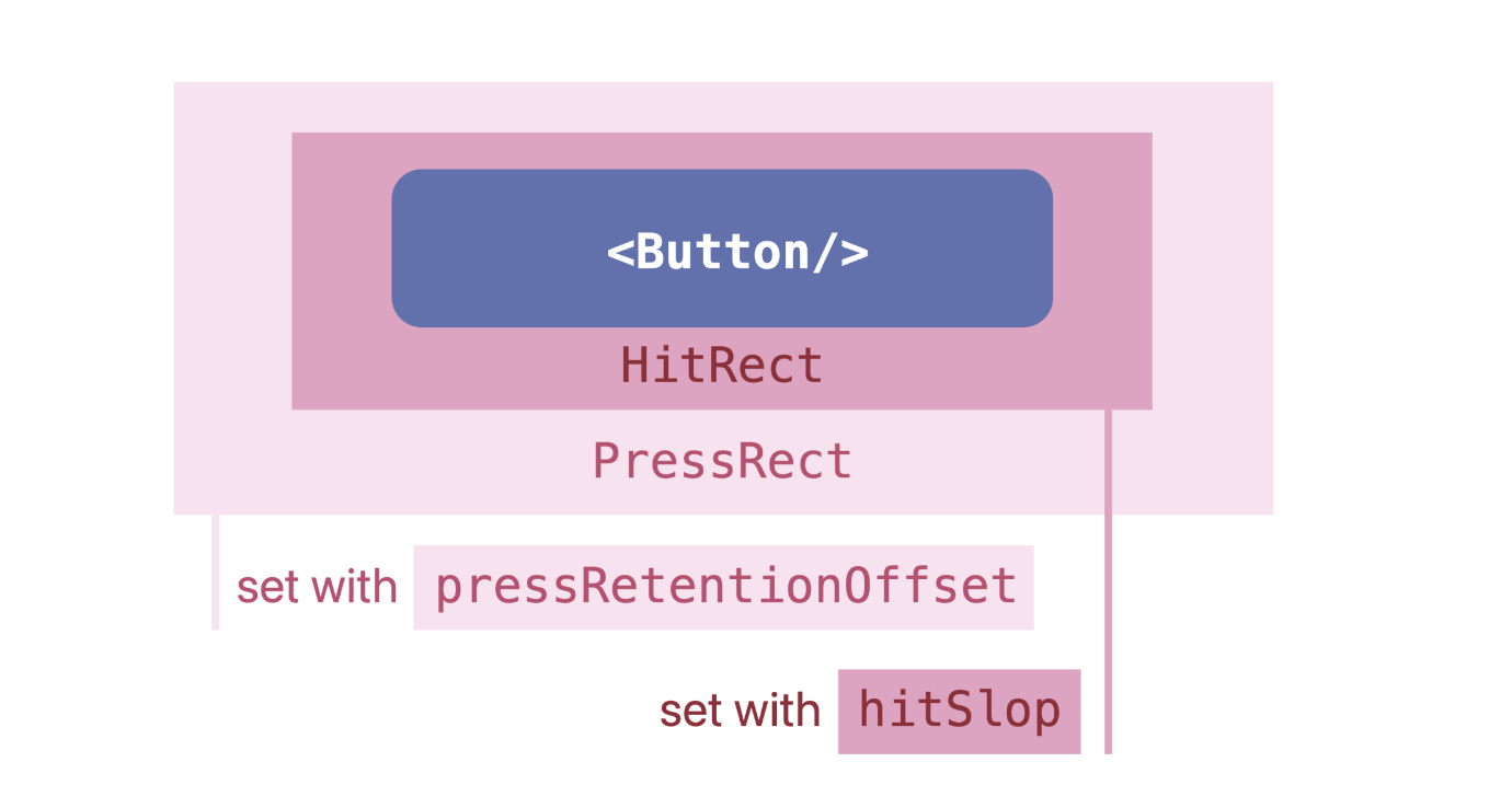 type PressRetentionOffset = Rect | numberpressRetentionOffset 和 HitSlop 一样,接收两种类型的参数,一种是 number 类型,另一种是 Rect 类型。Rect 类型设置后,会以原有可触发区域为基准,将可保留区域向外扩大一段距离。