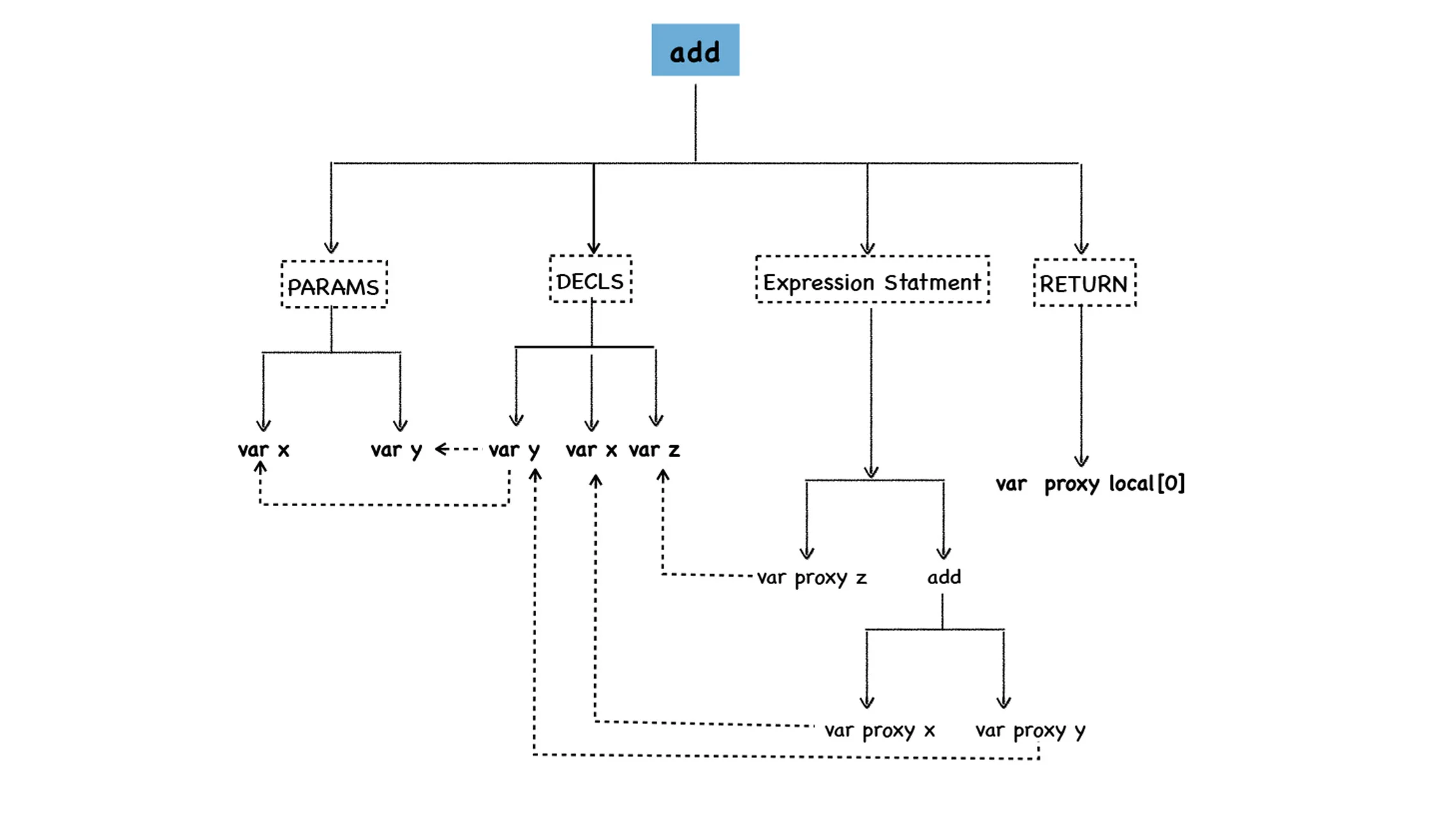 var proxy x和var proxy y的语法,它们指向了实际 x 和 y 的值。 - 第四部分是 RETURN 节点,它指向了 z 的值,在这里是 local[0]。