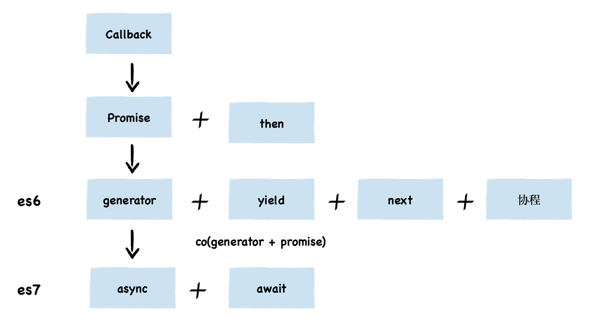 JavaScript 社区探索并推出了一系列的方案,从“Promise 加 then”到“generator 加 co”方案,再到最近推出“终极”的 async/await 方案,完美地解决了回调地狱所造成的问题。